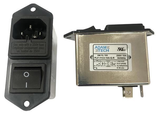 Adam Tech PLF-11C4-10A-Q-R Power Line Filters EMI/RF Line Filter, 115/250VAC 10A, flanged module w/ fuse and switch | EMIN.ASIA