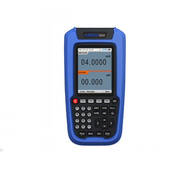 Additel 222A The Additel 222A Multifunction Process Calibrator takes all the functionality of the 221A and adds the ability to measure and source pressure using the ADT160A Intelligent Pressure Modules. With calibration characteristics programmed directly into the ADT160A pressure modules you can simply connect it to the 222A and it will automatically recognize and display the module as the source or measure pressure. For ultimate convenience, one 222A allows for modules to be "hot swapped" with a simple connection at the top of the module.