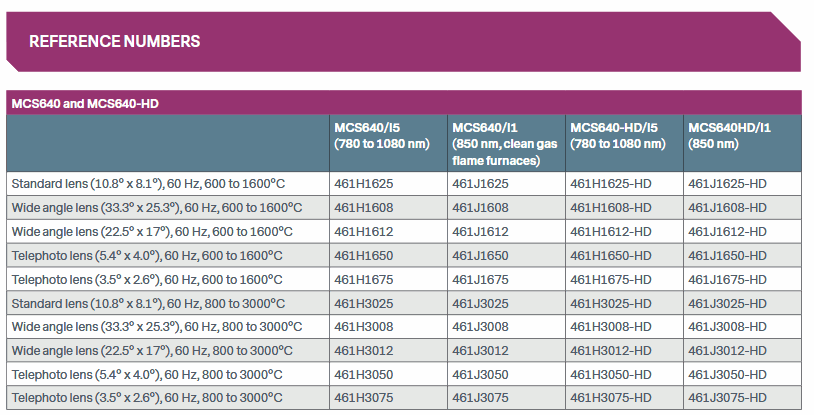 - Filter: 850nm, clean gas flame furnaces