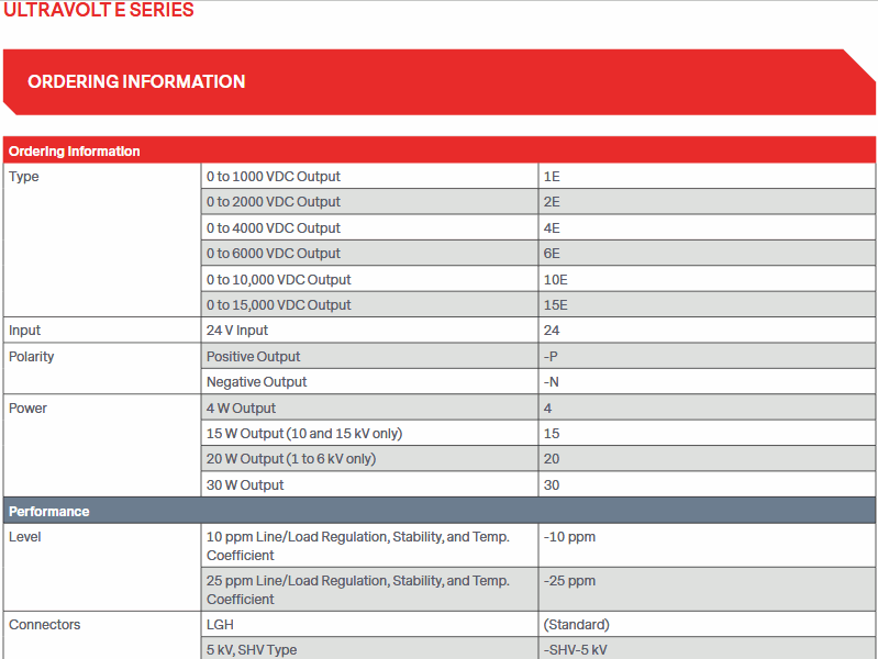 - Line Regulation: Nom Input, Max Eout, Full Power, < 25 ppmVDC or < 10 ppmVDC