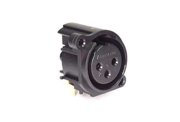 Amphenol Audio AC3FAHL1-AU-PRE Connectors 3 Pole XLR Female Chassis Mount A Type Gold Contacts Black Finish Horizontal PCB | EMIN.ASIA