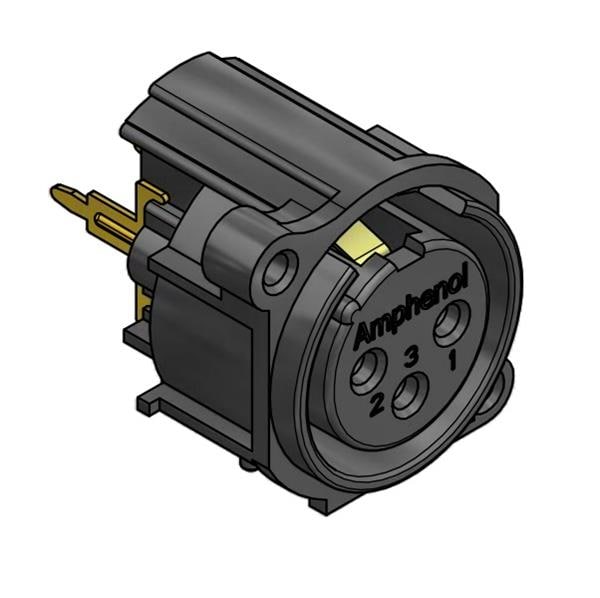 Amphenol Audio AC3FAVL2-AU-PRE Connectors 3 Pole XLR Female Chassis Mount A Type Gold Contacts Black Finish Vertical PCB | EMIN.ASIA