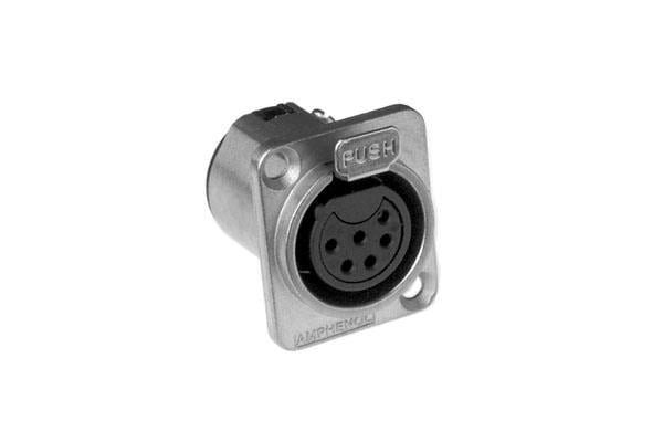 Amphenol Audio AC6AFDZ Connectors 6 Pole XLR Female Chassis Mount D Type Machined Contacts Nickel Finish | EMIN.ASIA