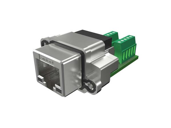 Amphenol Commercial Products MRJR598001 Modular Harsh RJ45, IP67, Panel Mount, Right Angle, with PCB and Terminal Blocks on the PCB, No LEDs, Unified Thread