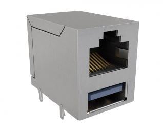 Amphenol Commercial Products RJE361882303 Modular Stacked 8P8C RJ over USB Type A 2.0 Shield | EMIN.ASIA