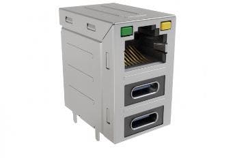 Amphenol Commercial Products RJE36188324CH Modular Stacked RJ45 over 2 Nos USB Type C LED G/Y 15 micro inch Contact Gold Plating