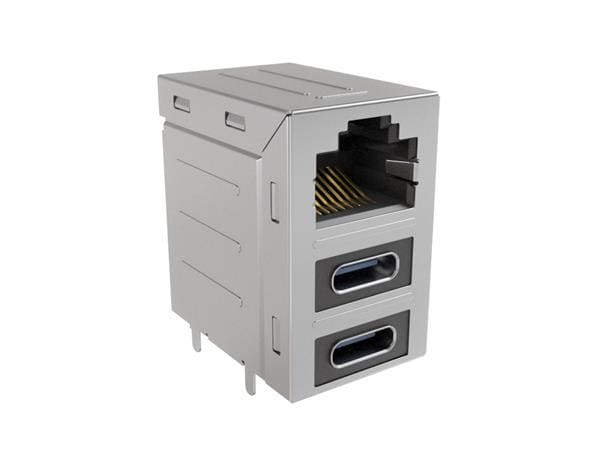 Amphenol Commercial Products RJE36188330CH RJ45 Over Dual USB Type C Stacked RJ45 over 2 Nos USB Type C 30 micro inch Contact Gold Plating