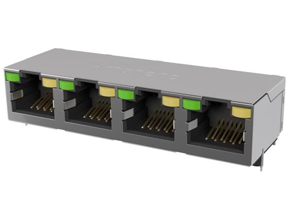 Amphenol Commercial Products RJE594886141 Connectors Standard Profile CAT6 RJ45 - 4 Port with Green LED, Shielded without EMI Tabs, Gold Plating