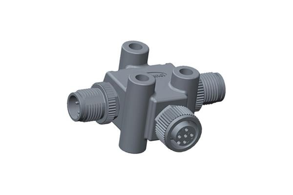 Amphenol LTW TA-A08F-A08M-A08M-01 Circular Metric Connectors Circular Metric Connector, T Adaptor, Metal, A Coding, 2A, 08 pins, (End 1) Female Female, (End 2) Male Male, (End 3) Male Male, Screw Thread, IP68 Mated