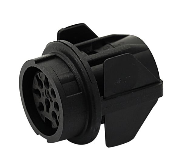 Amphenol Tuchel T3327-500 Connectors Straight, full plastic front mounting female receptacle with snap-in mount. 1.5mm max panel thickness (±0.25). Bayonet locking outside (mateable with locking inside). Contacts included