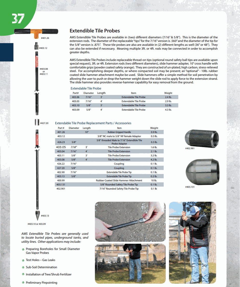 AMS 403.03 7/16" X 4' Extendible Tile Probe Complete | EMIN.ASIA