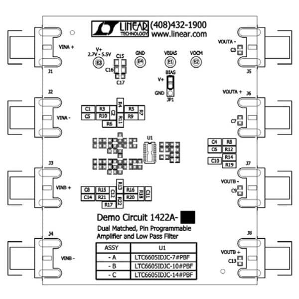 Analog Devices DC1422A-C Differential Amplifiers LTC6605-14 - Dual Matched 14 MHz Low Noi | EMIN.ASIA