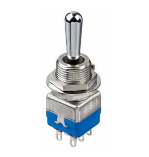 APEM 12146AX545 Toggle Switches 11.9mm Lever Toggle Switch, 4A, 30VDC, Solder Lug, Double Pole, ON-ON, satin chrome | EMIN.ASIA