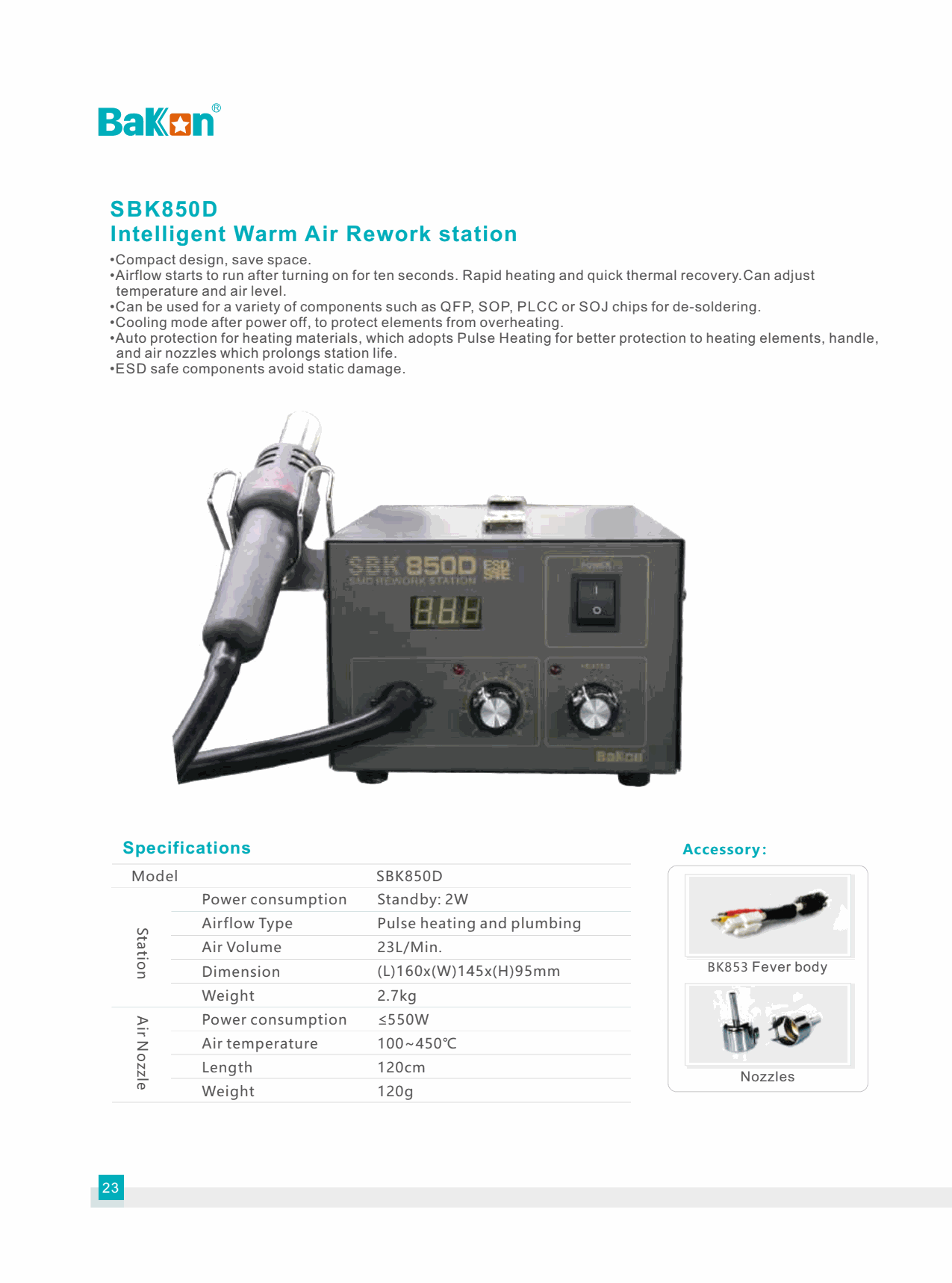 Bakon SBK850D Intelligent Warm Air Rework station (≤550W) | EMIN.ASIA