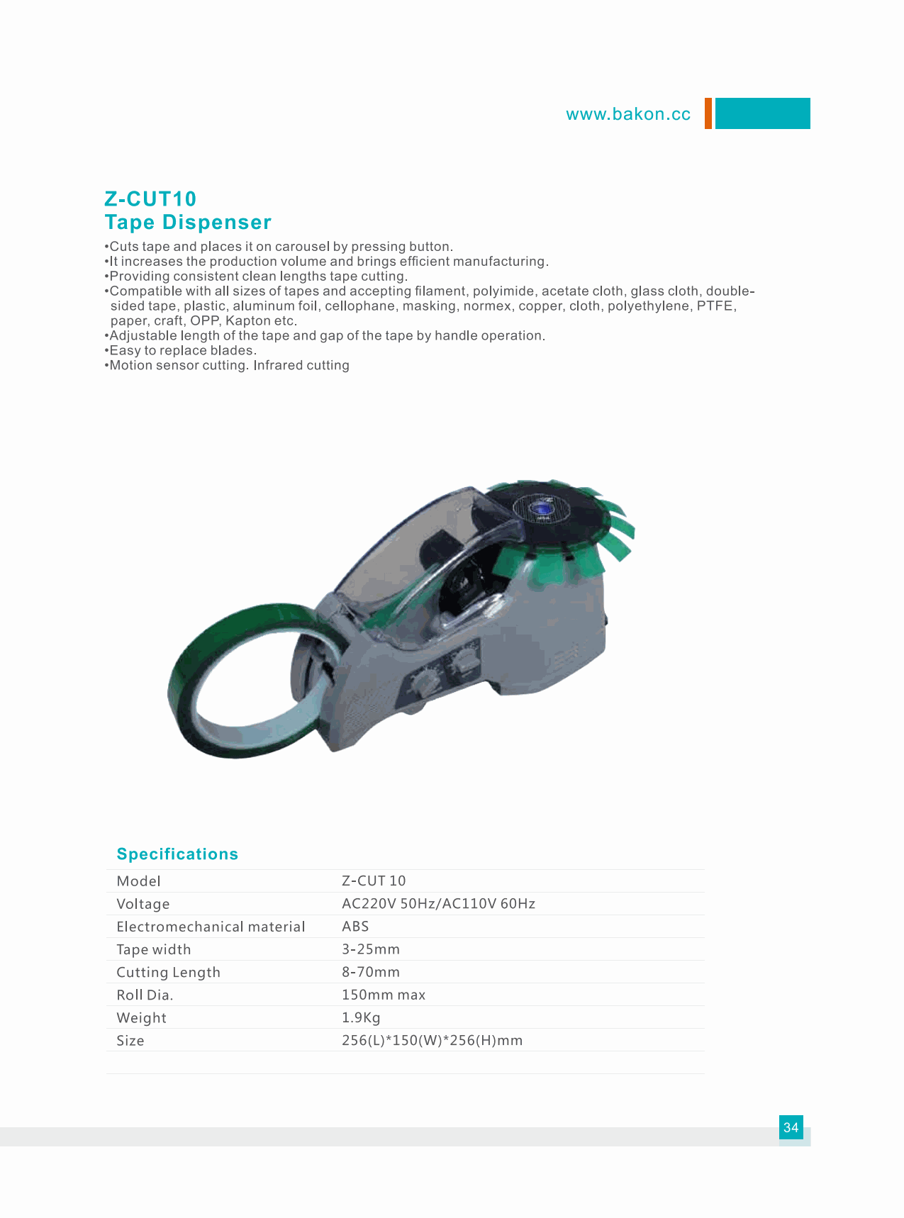 Bakon Z-CUT10 Tape Dispenser (8-70mm) | EMIN.ASIA
