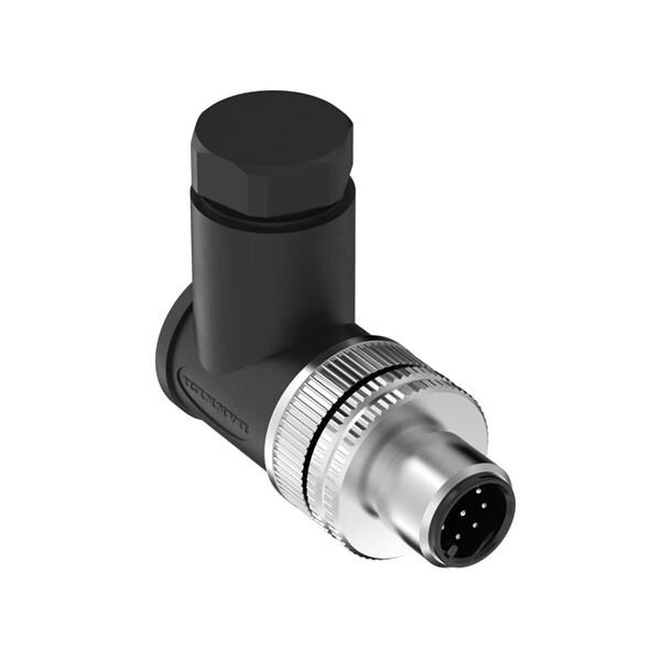Banner Engineering BFW-M12M8A-8X Field Wireable Connector Field Wireable: M12; 8-pin Right Angle Male; 22 AWG 6-8 mm Cable Range; Screw Terminal; PA+GF Black Body; Aluminum Alloy Coupling Nut