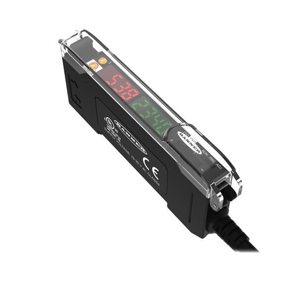 Banner Engineering DF-G3-NS-2M Fiber Optic Sensors DF-G3 Red Beam High Power Dual Display Fiber Amplifier; Range: Depends on Fiber; Input 10-30 V dc; Outputs: 1 NPN; 2 m 4-conductor PVC Cable