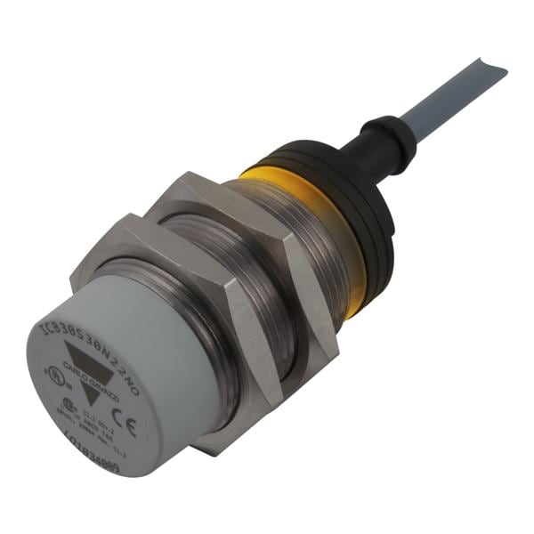 Carlo Gavazzi ICB30S30N22PO Proximity Sensors Inductive proximity sensor, M30 Nickel-Plated Brass, 2m cable, Sn 22mm, Non-flush mount, Short body, PNP NO output, Supply voltage 10-36Vdc, Max output current 200 mA, Max switching frequency 1 kHz, Operating temperature -25C - +70C, IP67
