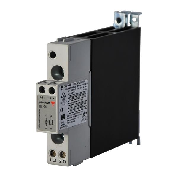 Carlo Gavazzi RGC1A60D20KGU 1-Phase Solid State Contactors 1-pole DIN-rail mount SSR, U-layout, Zero-cross switching, Operating voltage (Ue): 42 - 660 Vac (1200 Vp), Rated current (Ie): 23 Aac, Control voltage (Uc): 4 - 32 Vdc, Built-in overvoltage protection