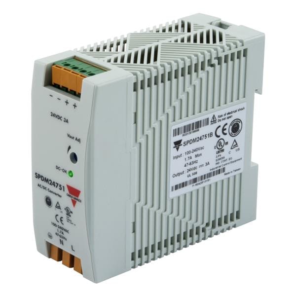 Carlo Gavazzi SPDM12751B Switching Supplies Switching Medium Power Supply, AC/DC, 75W, 12V, Spring Terminals, IP20, DIN-Rail Mounting, Over-load, Over-voltage and Short-circuit Protections, 22.5x90x100mm plastic housing