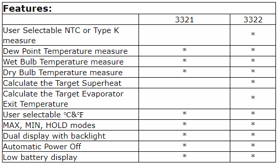NTC. Temp. Range / Resolution / Accuracy: 0-60℃/32-140℉ / 0.1℃/℉ / ±0.5℃/0.9℉