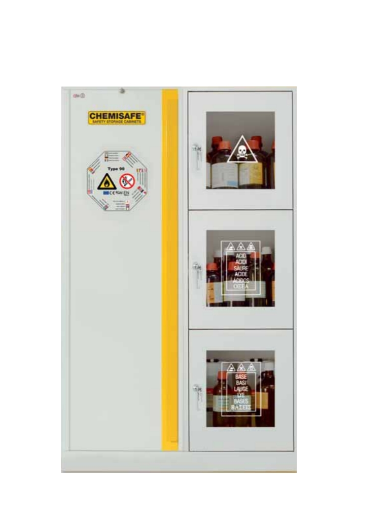 Acids/Bases/Toxics: 3 compartments, 3 glazed doors
