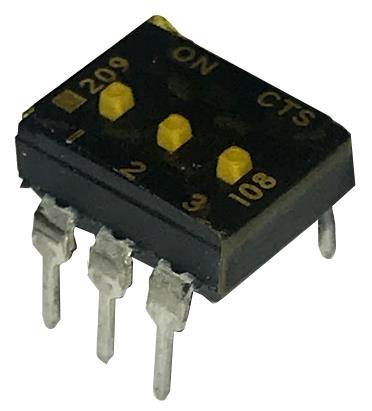 CTS Electronic Components 209-3MSTF DIP Switches THROUGH HOLE, GOLD DIP SWITCH, 3-POLE, MEDIUM ACTUATOR, BOTTOM SEAL, TAPE SEAL, OFF, TUBE PACK