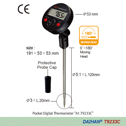 DaiHan A1.T9233C Thermometer Pocket, Movinghead -50~+300℃ | EMIN.ASIA