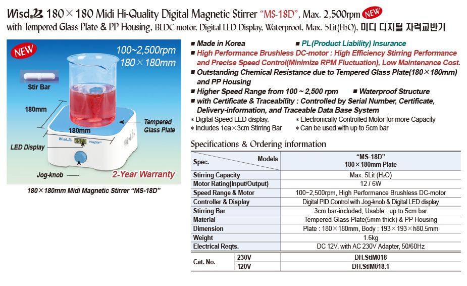 DaiHan MS-18D Mini Hi-Quality Digital Magnetic Stirrer (2500rpm, 5L) | EMIN.ASIA
