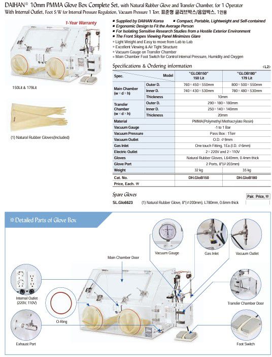 DaiHan GLOB150 10mm PmmA Glove Box Complete Set (150 Lit, 2 Ports, 8″(Φ203mm)) | EMIN.ASIA