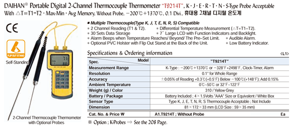DaiHan T9214T Portable Digital 2-Channel Thermocouple Thermometer | EMIN.ASIA