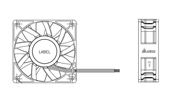 Delta Electronics, Inc. PFB1248UHE309 Tubeaxial Tubeaxial Fan, 120x38mm, 48VDC, Ball, 4-Lead Wires, Lock Rotor Sensor, Tach, PWM | EMIN.ASIA