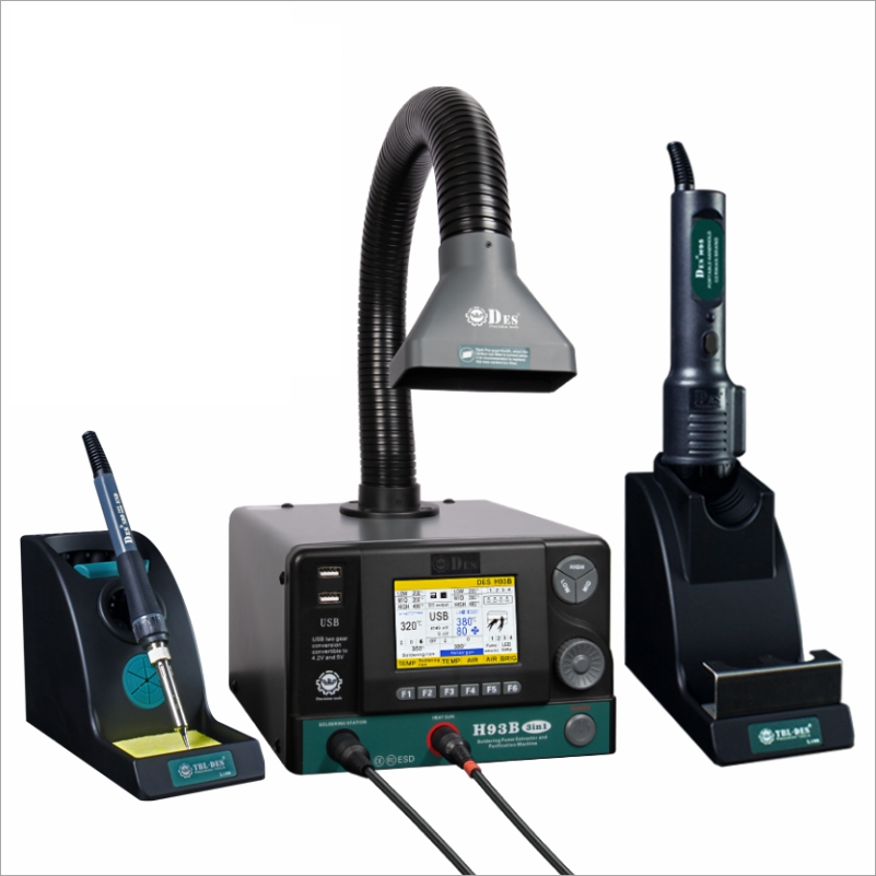 Three-in-one multifunctional maintenance station: soldering, desoldering, and smoke purification.