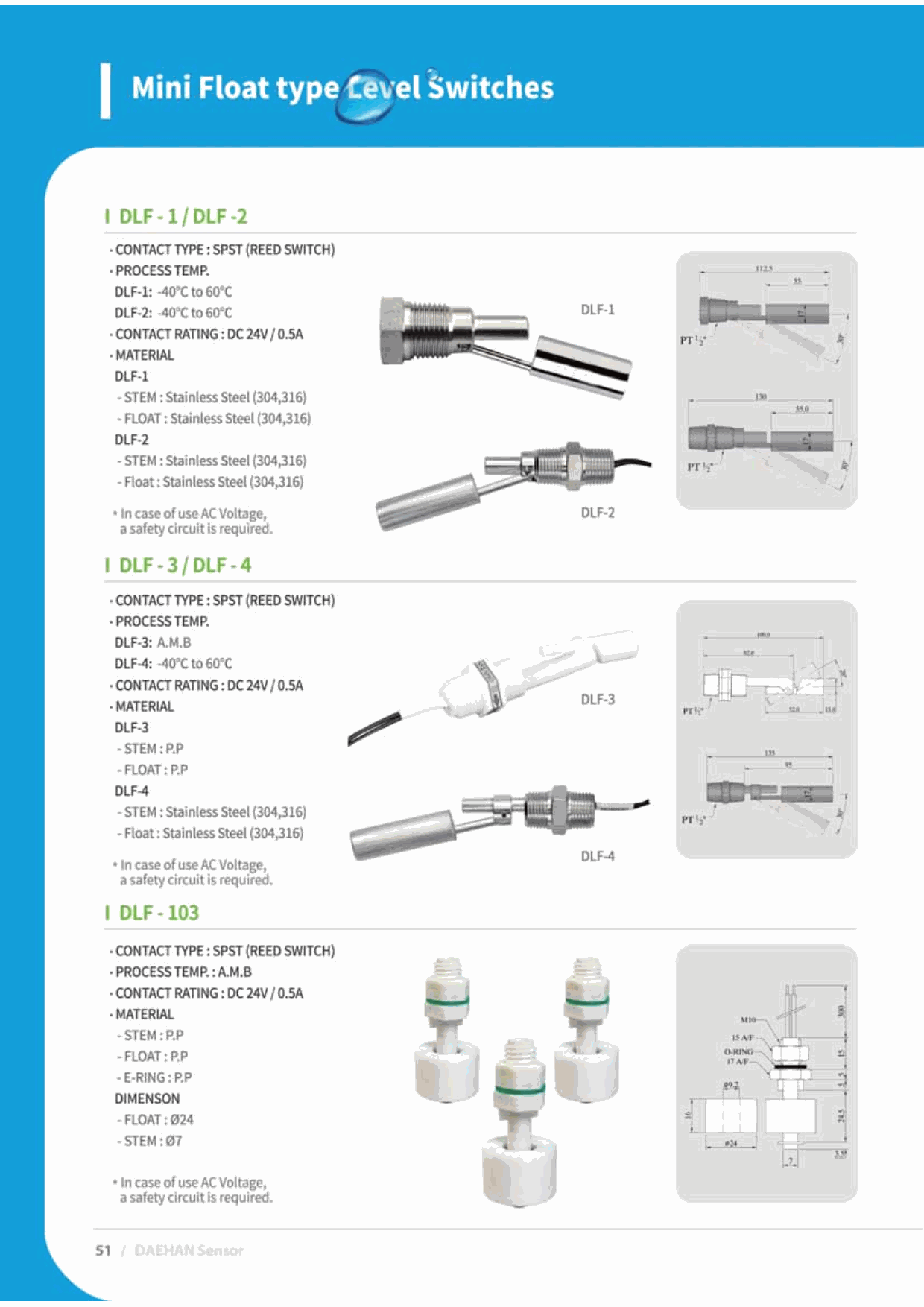 DHS DLF-1 Mini Float Type Level Switch (SPST) | EMIN.ASIA