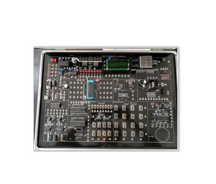 The circuit experiment box motherboard is made of 2 mm thick printed circuit board, front printed with components graphic symbols and relevant attachment, opposite is printed wire, and welding related components, the motherboard set with several high reliable multi-function chips socket several high reliable silver coating long copper tube, for insert resistor capacitor, diode and the transistor, etc, and with the universal bread board for insert all kinds of components.