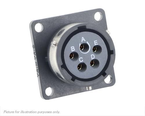 Eaton Souriau-Sunbank UTGX014E5S Receptacles Square flange receptacle, without backshell, with 5 female solder contacts, IP68/69K in unmated conditions