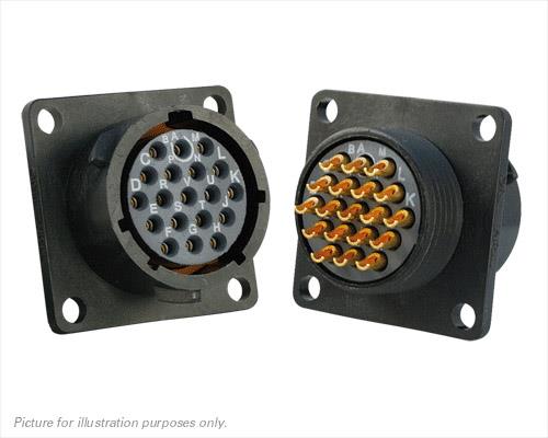Eaton Souriau-Sunbank UTS014E19SW Receptacles Plastic square flange receptacle, without backshell, with 19 female solder contacts, IP68/69K in unmated conditions, keying W