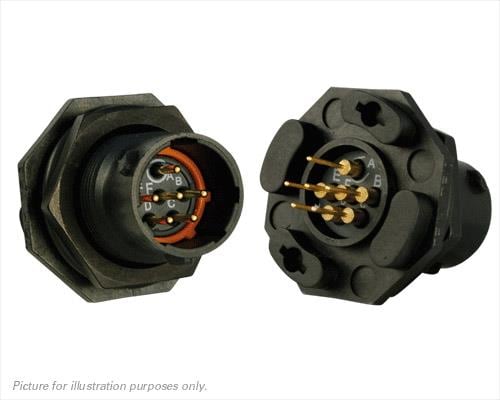 Eaton Souriau-Sunbank UTS710D98PW Receptacles Plastic jam nut receptacle, without backshell, with 6 male PCB contacts, IP68/69K in unmated conditions, keying W