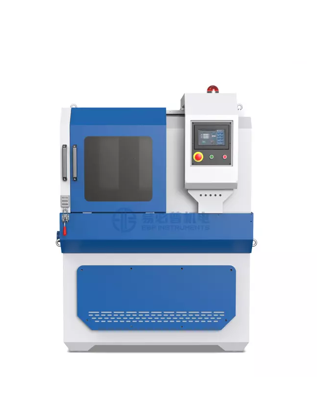 Large capacity multifunctional metallographic sample cutting machine, mainly used to cut cylindrical and polygonal and irregular general metallographic specimen materials such as tabs, the machine is a double hood fully enclosed structure and fast clamping mechanism. The machine is equipped with a fully enclosed double housing and a quick clamping mechanism to ensure that the specimen is cut in absolute safety. In order to avoid overheating during cutting and burning the specimen material, the machine is equipped with a strong cooling system, which can avoid micro-burns on the surface of the specimen when cutting down, increase the cutting cross-section, improve the utilisation rate of the cutting wheel, and has the advantages of easy operation, maintenance and maintenance.