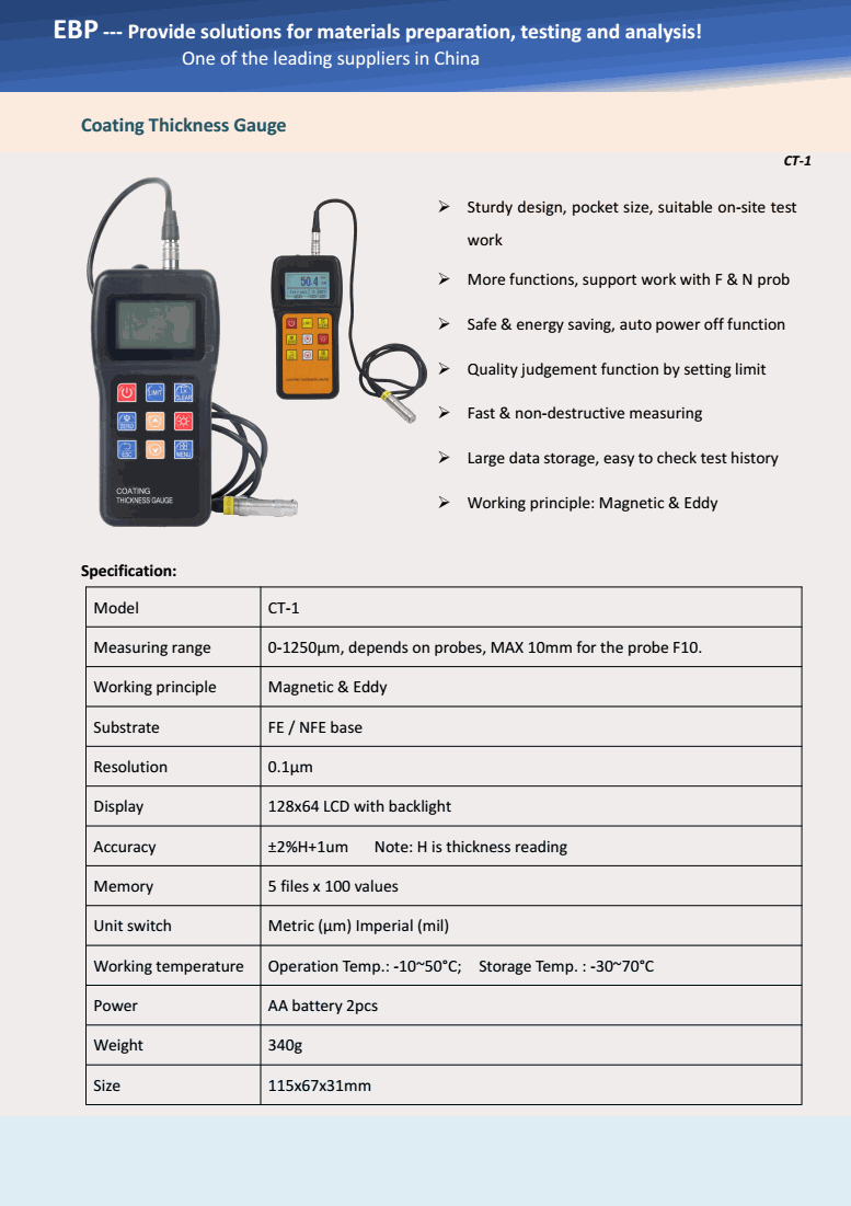 EBP CT-1 Coating Thickness Gauge (0-1250μm; ±2%H+1um) | EMIN.ASIA