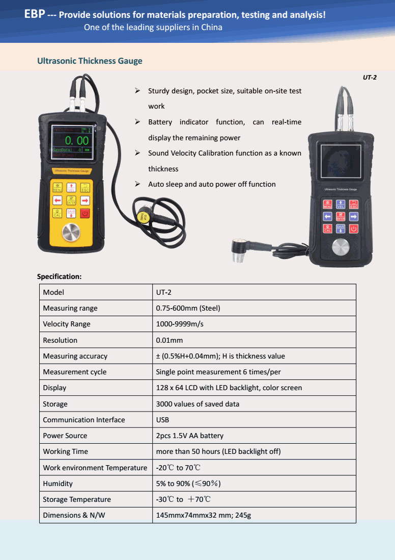 EBP UT-2 Ultrasonic Thickness Gauge (0.75-600mm) | EMIN.ASIA