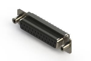EDAC 628-025-620-548 Standard Card Edge Connectors 628 Series vertical D-Sub plug connector with 25 socket type contacts that have 30 " gold plating. The contacts have .105" (2.67mm) to .160" (4.06mm) long P.C.B tails and the insulator is high temp' rated.The body is low profile metal and the flange