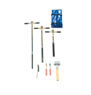 The set consists of three two-piece gouge augers with different diameters. By first taking a sample with the gouge with the largest diameter and subsequently with gouges having smaller diameters, cross-contamination among the samples is avoided. The gouges have a diameter of 40, 30 and 20 millimetres with a net length of 30 centimetres