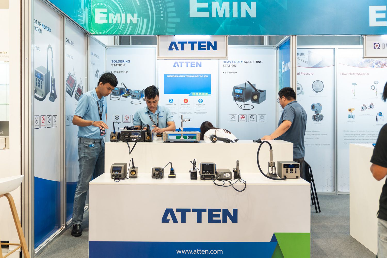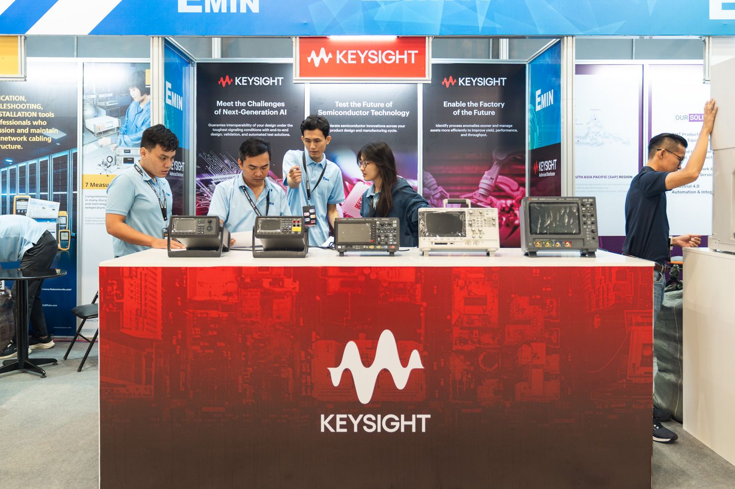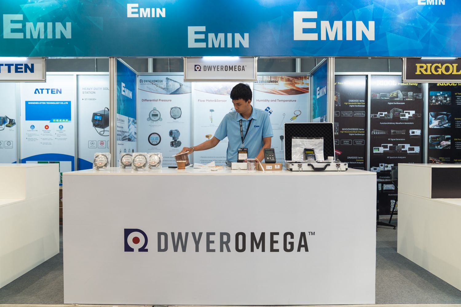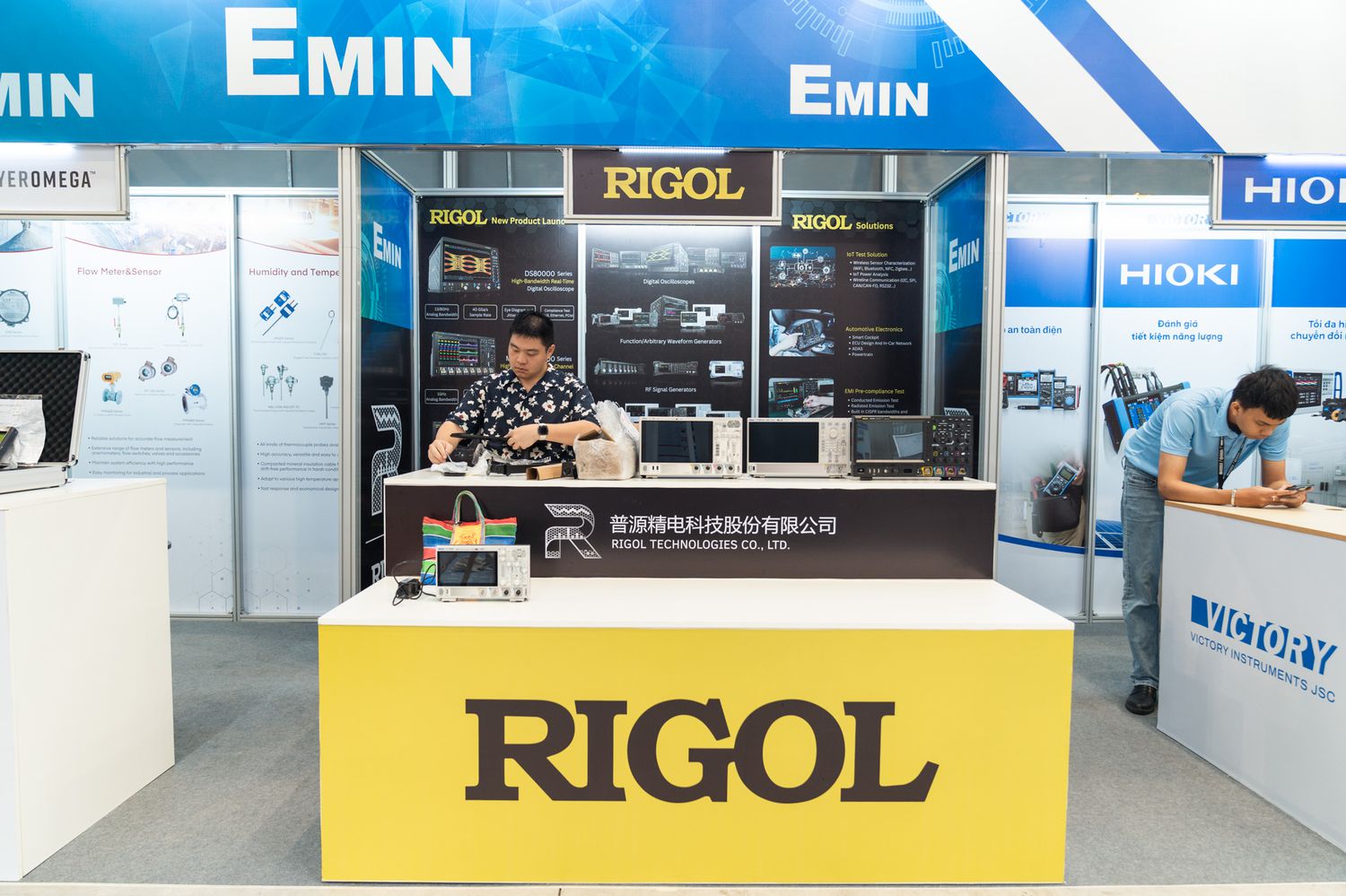 During the exhibition, EMIN Group made a good impression with its outstanding booth with its signature turquoise color and a series of advanced technology products from leading brands such as KEYSIGHT, TEKTRONIX, RIGOL, FLUKE, DRYEROMEGA, MTSC, ATTEN, HIOKI, ViE