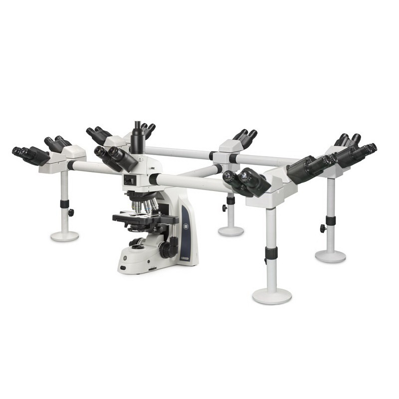 One trinocular head with Siedentopf 30°inclined Ø 30 mm tubes and SWF 10x/25 mm eyepieces and nine binocular heads with Siedentopf 30° inclined Ø 30 mm tubes and SWF 10x/22 mm eyepieces