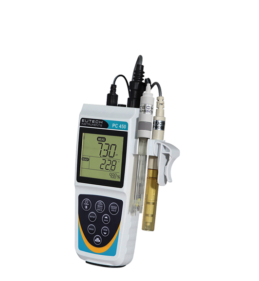 Supply: Meter, double-junction pH electrode, conductivity cell (K = 1.0), Grip-Clip™, two AA batteries,