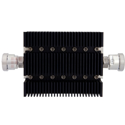 Fairview SA6DFDF100W-50 50 dB Fixed Attenuator 7/16 Female To 7/16 Female Directional Up To 6 GHz Rated To 100 Watts With Black Aluminum Heatsink Body
