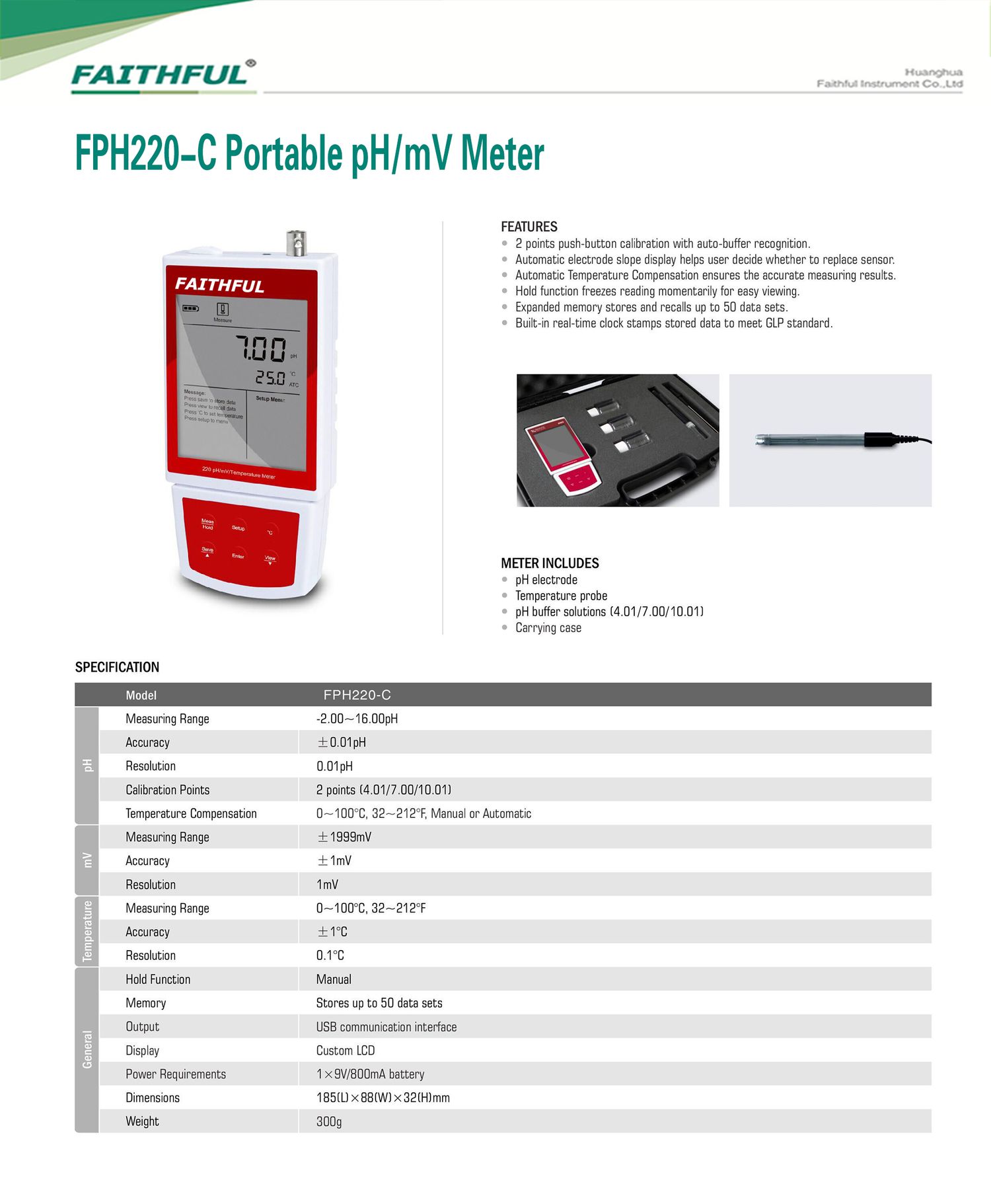 Faithful FPH220-C Portable pH/mV Meter (-2.00-16.00PH; ±1999mV; 0~100℃) | EMIN.ASIA