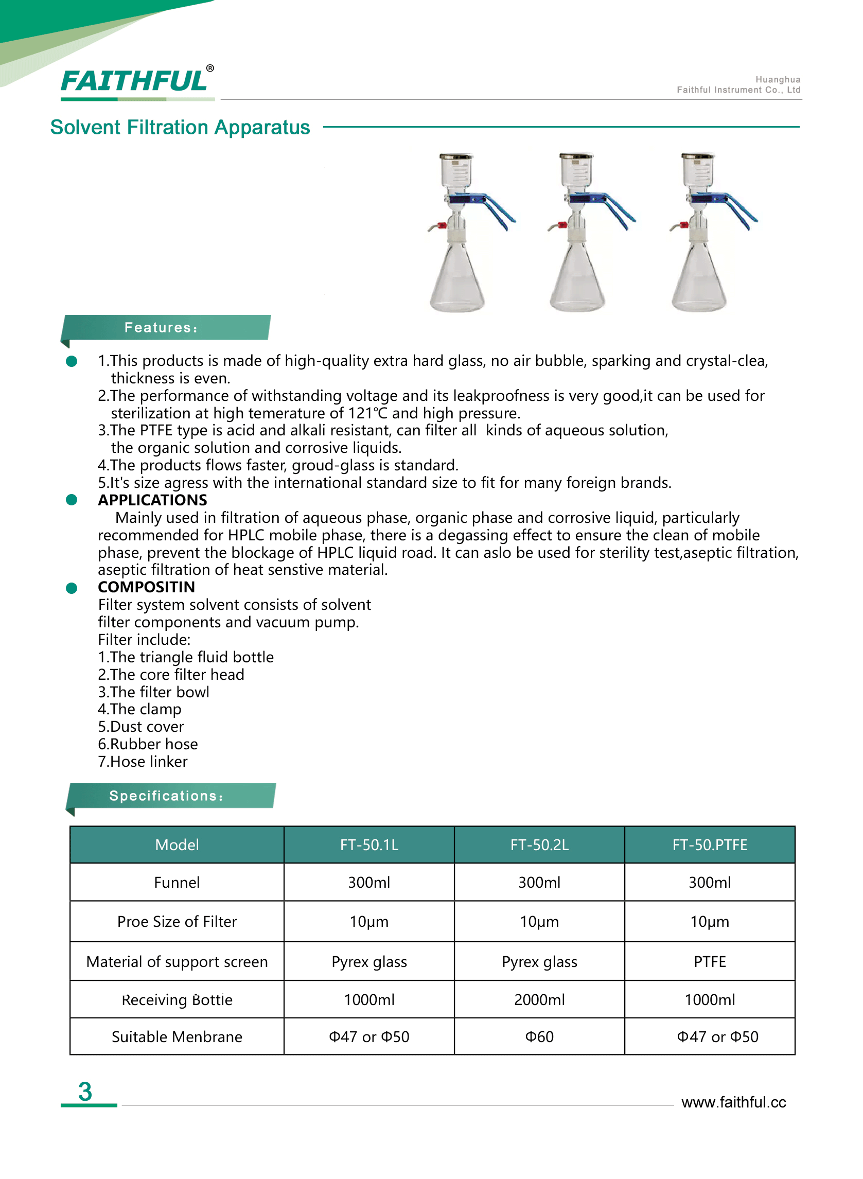 Faithful FT-50.1L Solvent Filtration Apparatus (300ml; 1000ml) | EMIN.ASIA