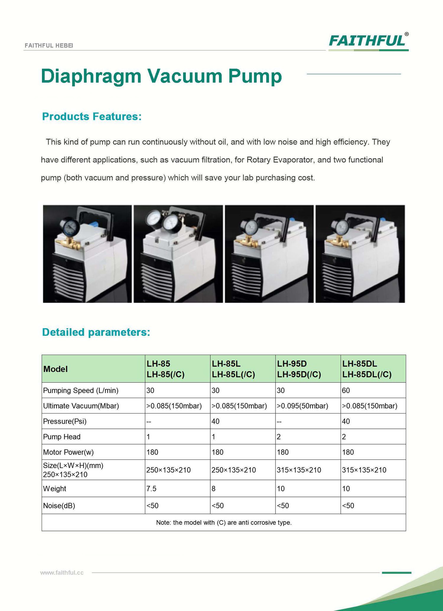 Faithful LH-85DL(/C) Diaphragm Vacuum Pump (60L/min; Anti corrosive) | EMIN.ASIA